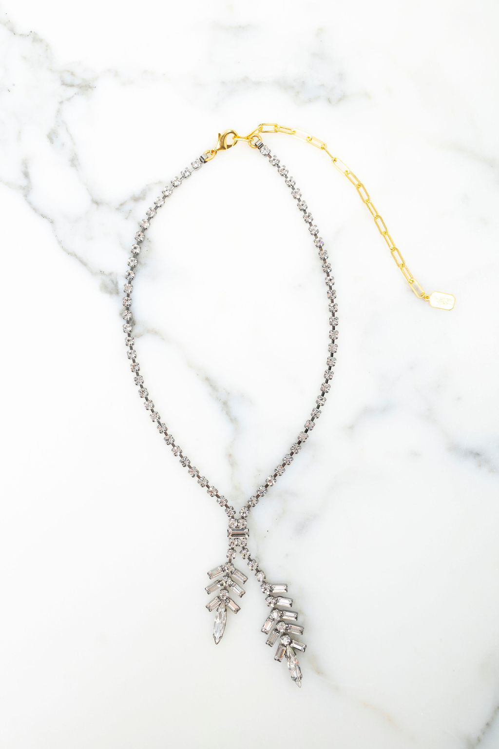 Elevate your style with the Winika Necklace, featuring two delicate crystal leaf dangles that add a touch of natural elegance. Choose from classic crystal, shimmering aurora borealis, rich purple, or a sophisticated combination of classic crystal paired with glass angel skin navettes. This versatile piece sparkles beautifully, making it perfect for everyday wear or special occasions. Embrace the subtle charm and dazzling shine of the Winika Necklace to enhance any outfit effortlessly.24k Gold Plate, Rhodium Plate. Swarovski Crystals. Lobster Claw Closure. Proudly Handcrafted in the U.S.A