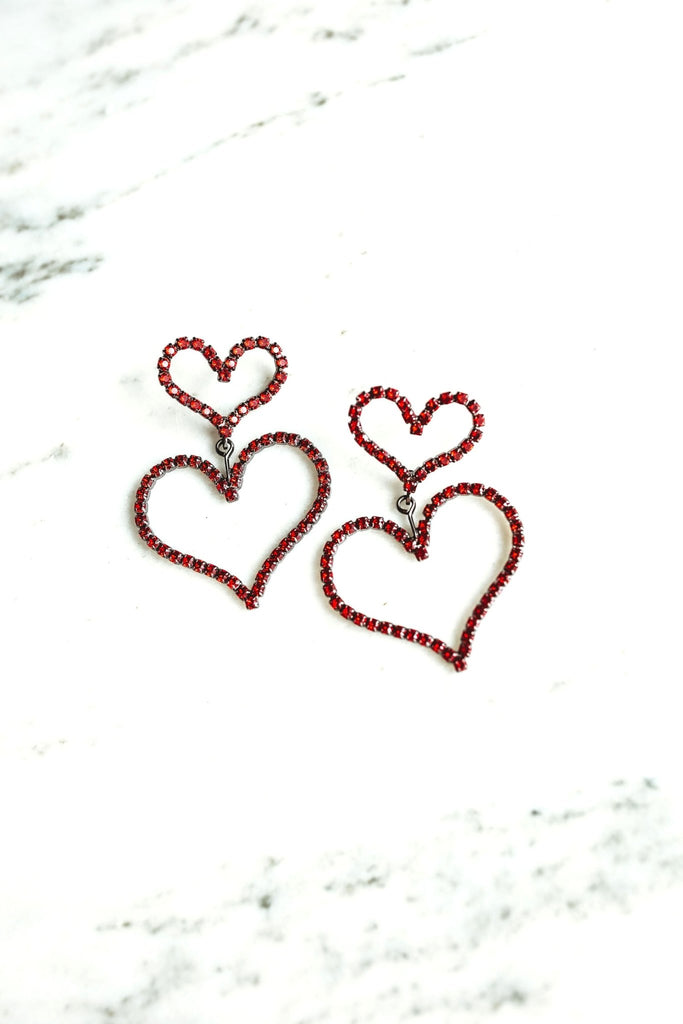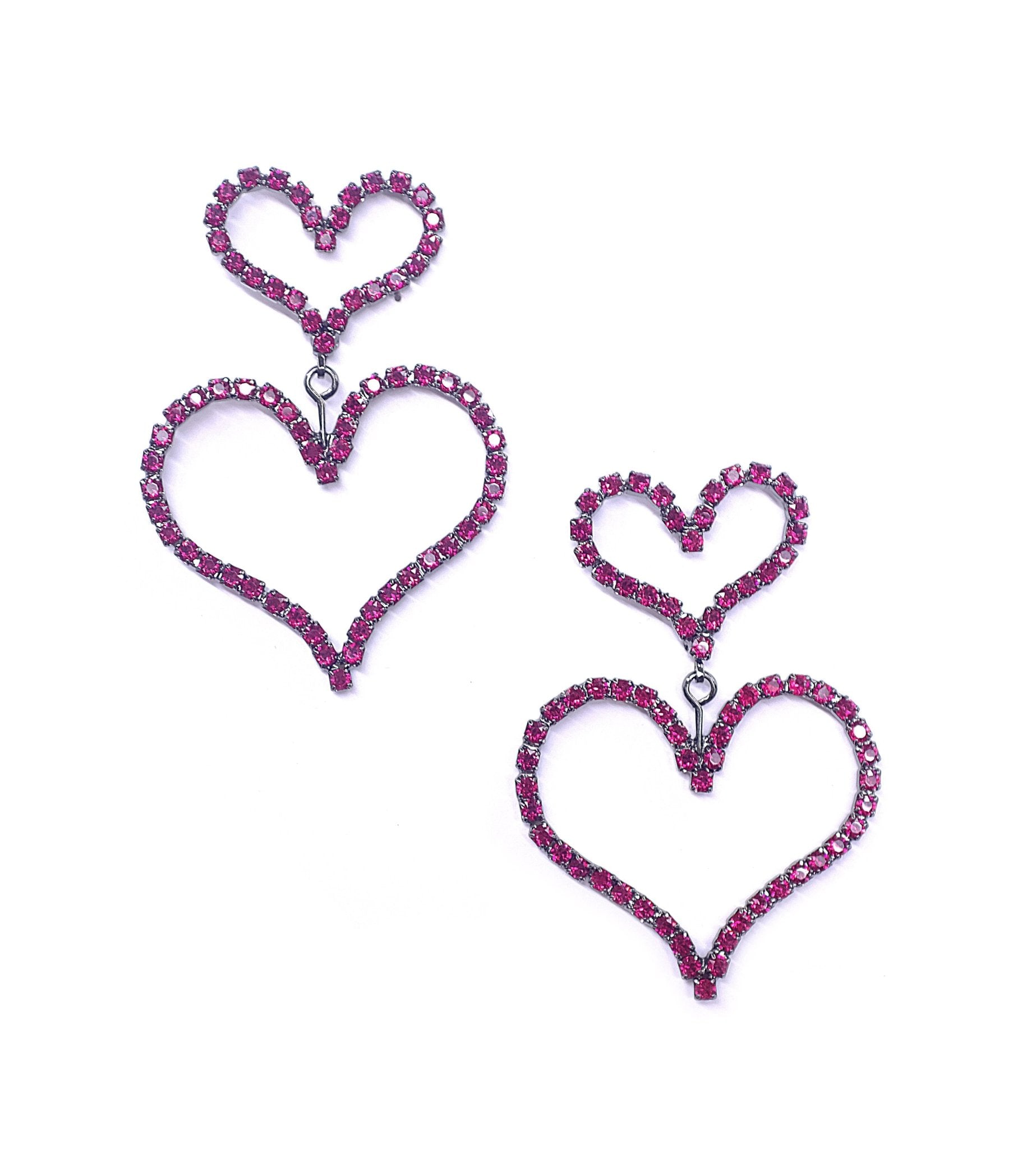 Lightweight and fun, the Emilia earrings feature graduated sized hearts in pink. Swarovski Crystals, Hematite Plate, Pierced Closure, Proudly Made in the USA.