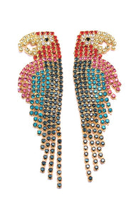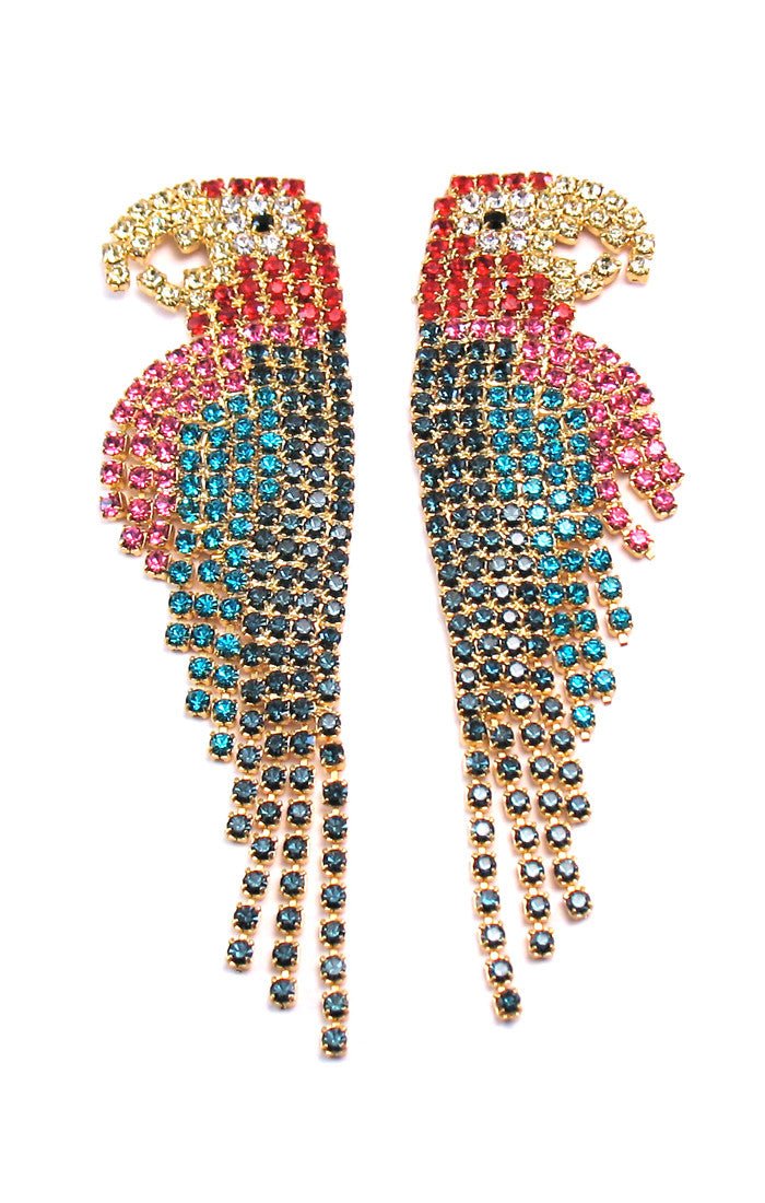 A classic within the Elizabeth Cole collection, our traditional Macaw Earrings were the first in our Aviary and continue to be much loved as a bejeweled embodiment of the traditional parrot. Swarovski Crystals, 24kt Gold Plate, Post Closure, Proudly Made in the USA.
