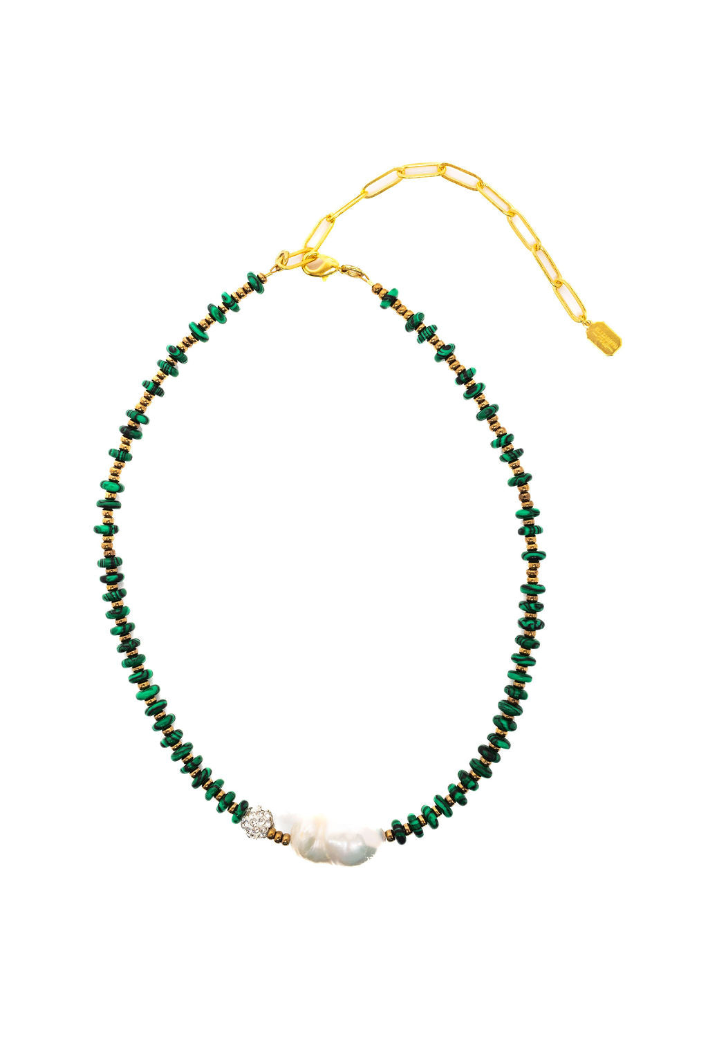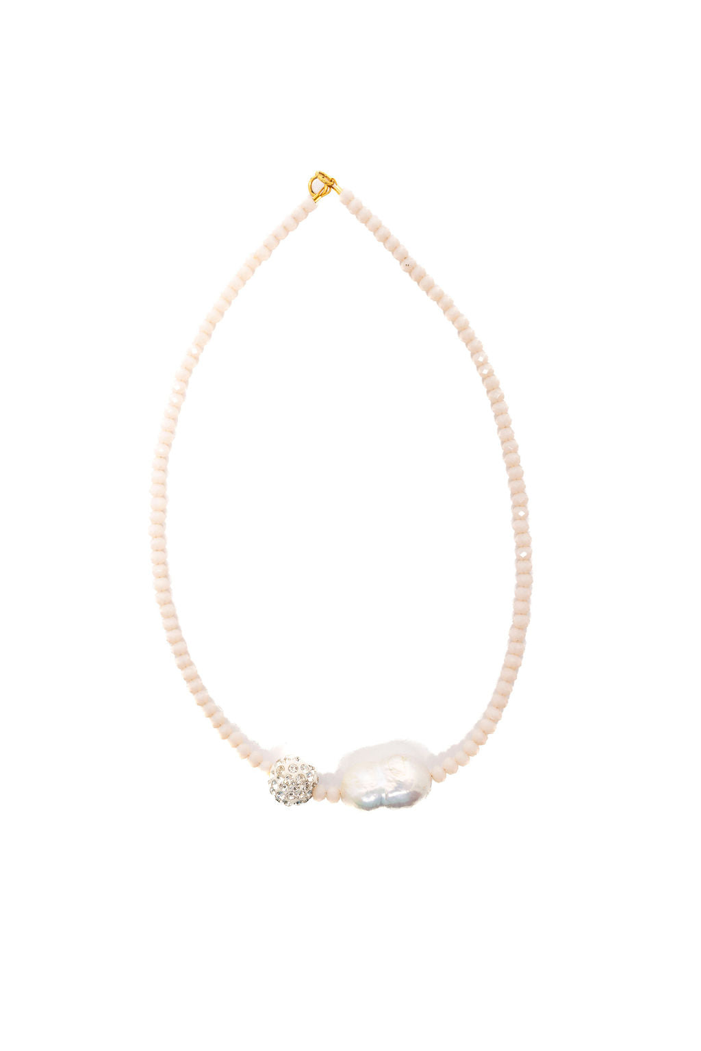 The Alona Necklace empowers you to curate a look that feels authentically yours. Pick your preferred bead style—vintage faux jade for earthy warmth or delicate glass angel skin for subtle luminosity—then enjoy the interplay of polished gold spacers, organic freshwater baroque pearl, and a sparkling crystal-encrusted accent bead. This versatile piece adapts to your mood and occasion, offering the perfect finishing touch whether you're seeking understated elegance or bold self-expression. 24k Gold Plate. Imitation Rhodium Plate. Lobster Claw Closure. Proudly made in the U.S.A