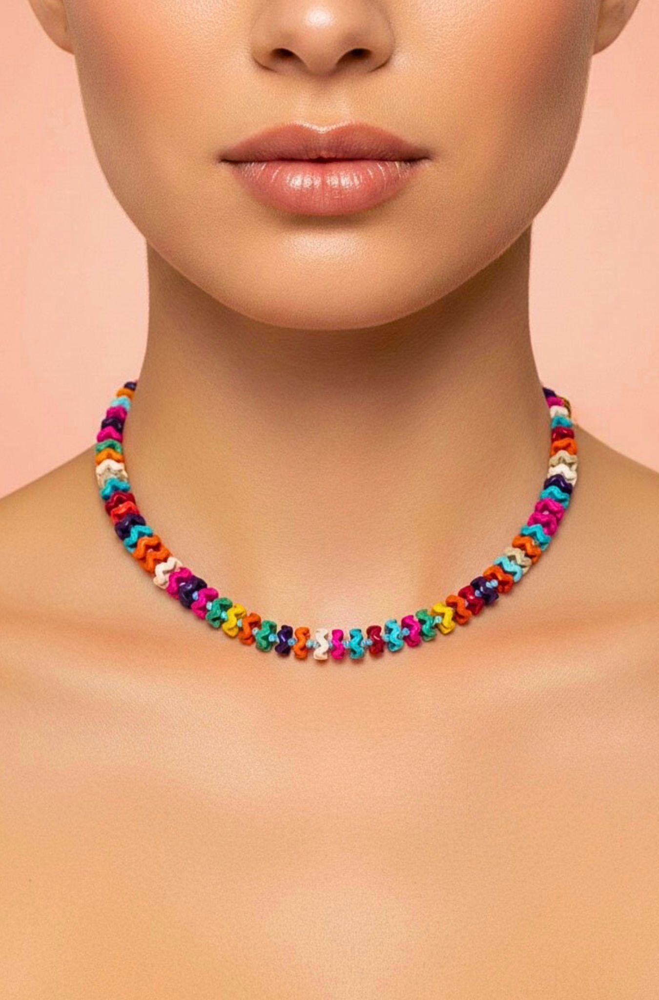 The Aroha Necklace brings vibrant energy to your everyday look with its stunning colorful interlocking howlite beads. Proudly crafted right here in the USA, this piece celebrates artisanal quality and conscious design. Stack it effortlessly with our Coast or Turqina necklaces for a personalized, layered aesthetic that's uniquely you. Perfect for mixing, matching, and making a joyful statement.