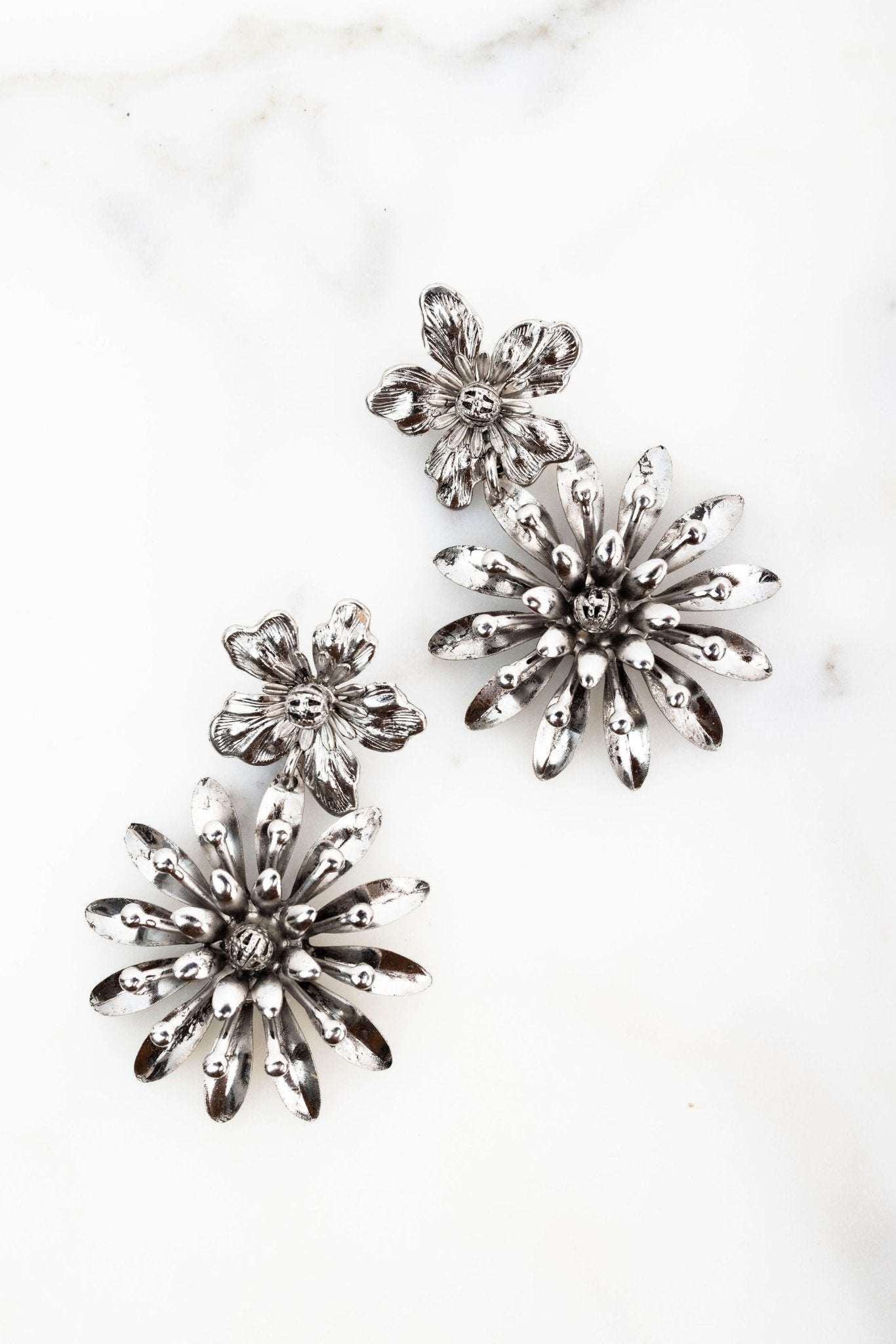 Add a playful touch to your outfit with our Aubriella Earrings. These double drop, graduated earrings feature layered floral designs that move with you, creating a fun and unique look. 24kt Gold Plate or Rhodium Plate. Post Closure, Proudly Made in the USA.