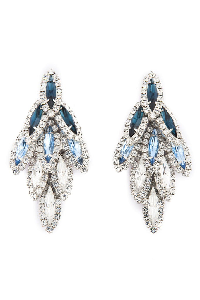 Introducing our one-of-a-kind Bacall Earrings in a stunning ombre blue shade. Made with exquisite Swarovski Crystals and a sleek Imitation Rhodium Plate, these earrings are a timeless and unique addition to any jewelry collection. Get ready to turn heads with this original design!