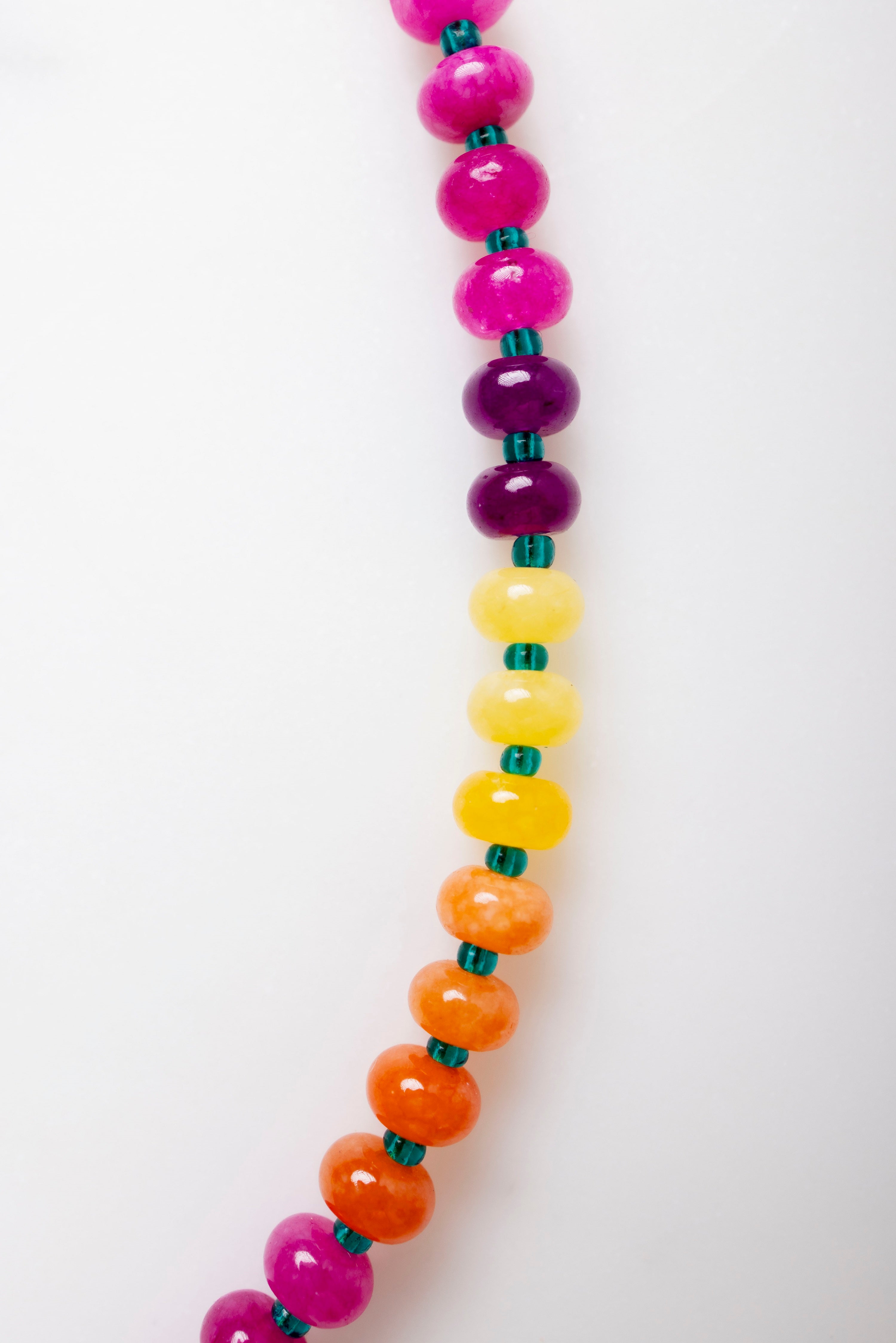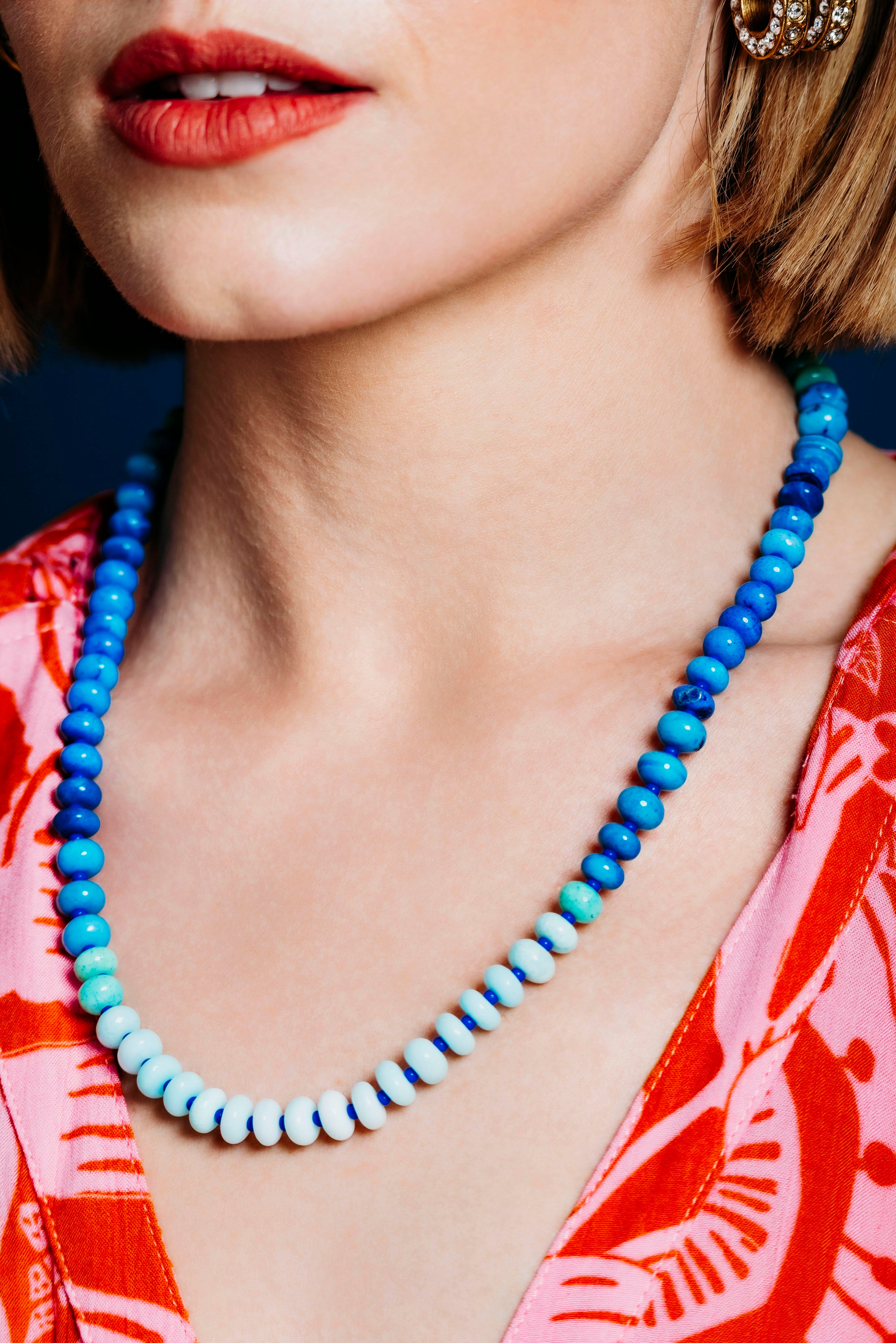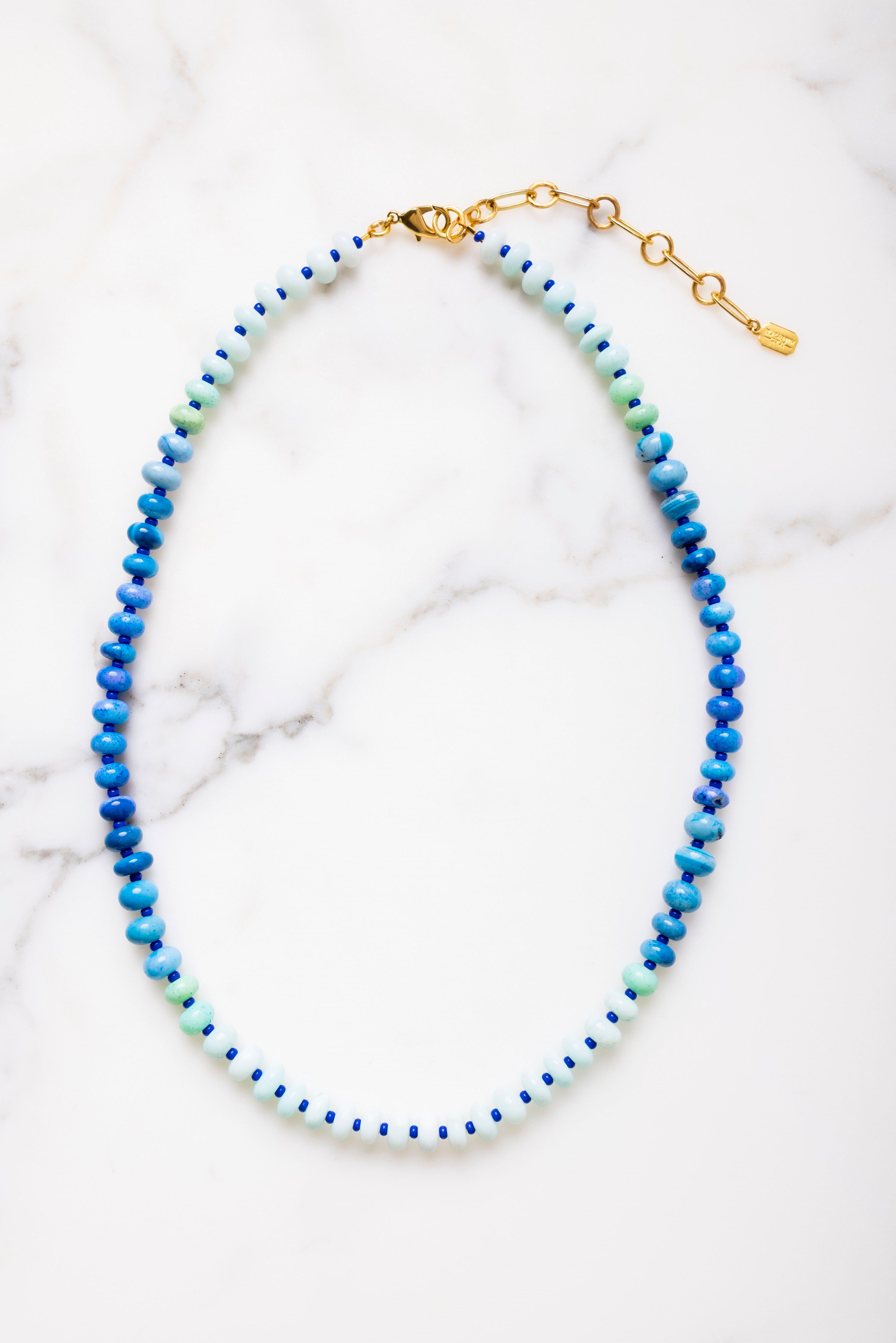 The Chancina Necklace is a vibrant celebration of color and craftsmanship. Strung with an eye-catching mix of beads in rich autumnal oranges, warm golds, or cool blues, this playful piece brings instant personality to any outfit. Each bead is carefully selected to create a harmonious blend of hues that transitions beautifully from season to season. Proudly handcrafted in the USA, this necklace combines artisanal quality with a fun, eclectic spirit—perfect for anyone who loves to make a colorful statement.