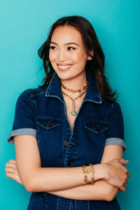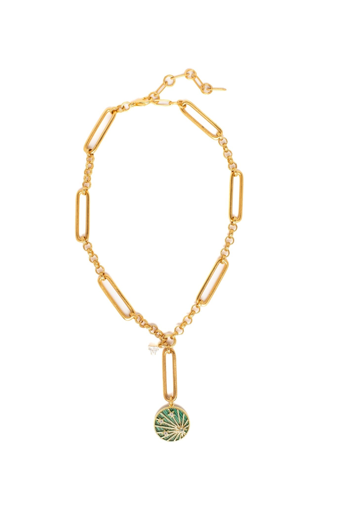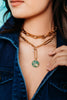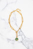 Take a daring plunge into the cosmos with the Cosmos Necklace! This 24kt gold plated necklace features a classic alternation of round and oval links, highlighted by a mesmerizing malachite and crystal detail. Own a piece of the stars with this premium, USA made necklace!