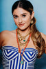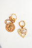 Make a bold statement with the Dalrina Earrings—an edgy pair of half hoops that blend celestial mystery and ancient power. One earring features a heart charm adorned with moon phases and a sparkling crystal heart, while the other showcases a coin charm bearing a Roman emperor, a crystal horseshoe, and a delicate heart. Perfect for those who dare to mix symbolism and style in a striking, unmatched duo.24k Gold Plate, Premium Crystals. Post Closure. Proudly made in the U.S.A
