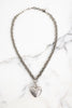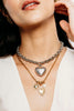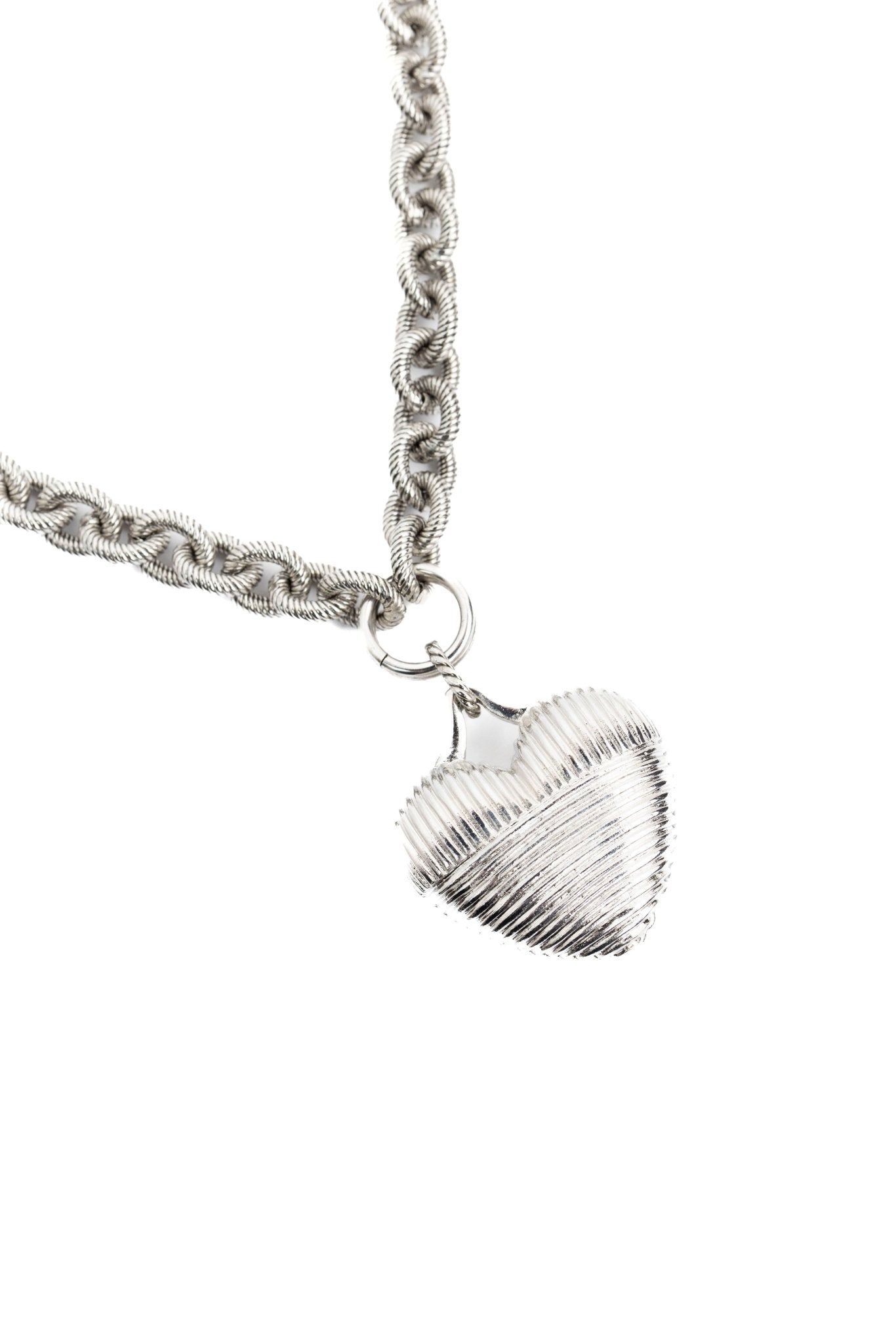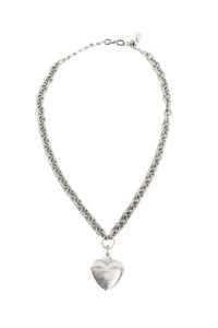 Add a touch of edginess to your wardrobe with the Emory Necklace. The silver puffy heart, textured with unique lines, dangles from chunky silver links for a playful twist on a classic accessory. Perfect for those who don't take themselves too seriously.Proudly Made in the USA, Imitation Rhodium Plate.