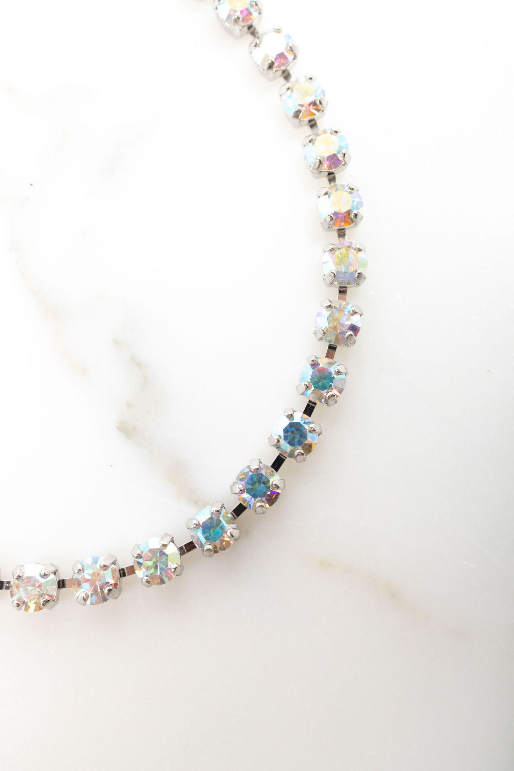 The Kristell Necklace is a refined piece featuring aurora borealis crystals in iridescent or emerald hues. These crystals shimmer with a captivating play of light, adding an elegant and sophisticated glow that enhances your neckline with timeless beauty.Rhodium Plate. 24K Gold Plate. Swarovski Crystals. Lobster Claw Closure. Proudly Crafted in the U.S.A