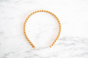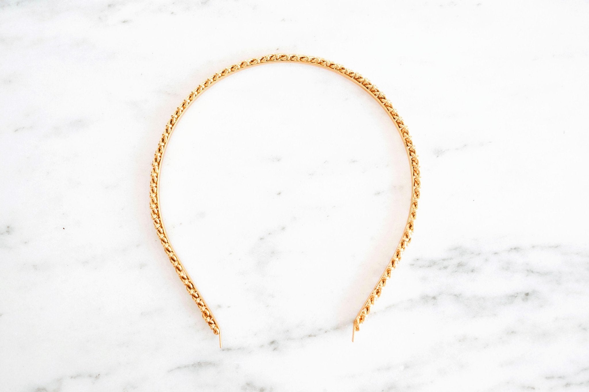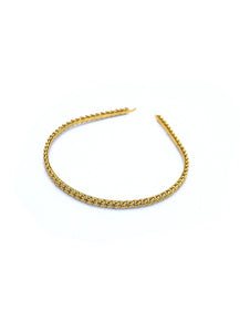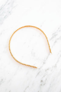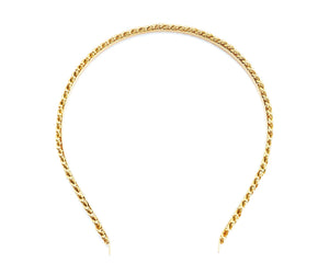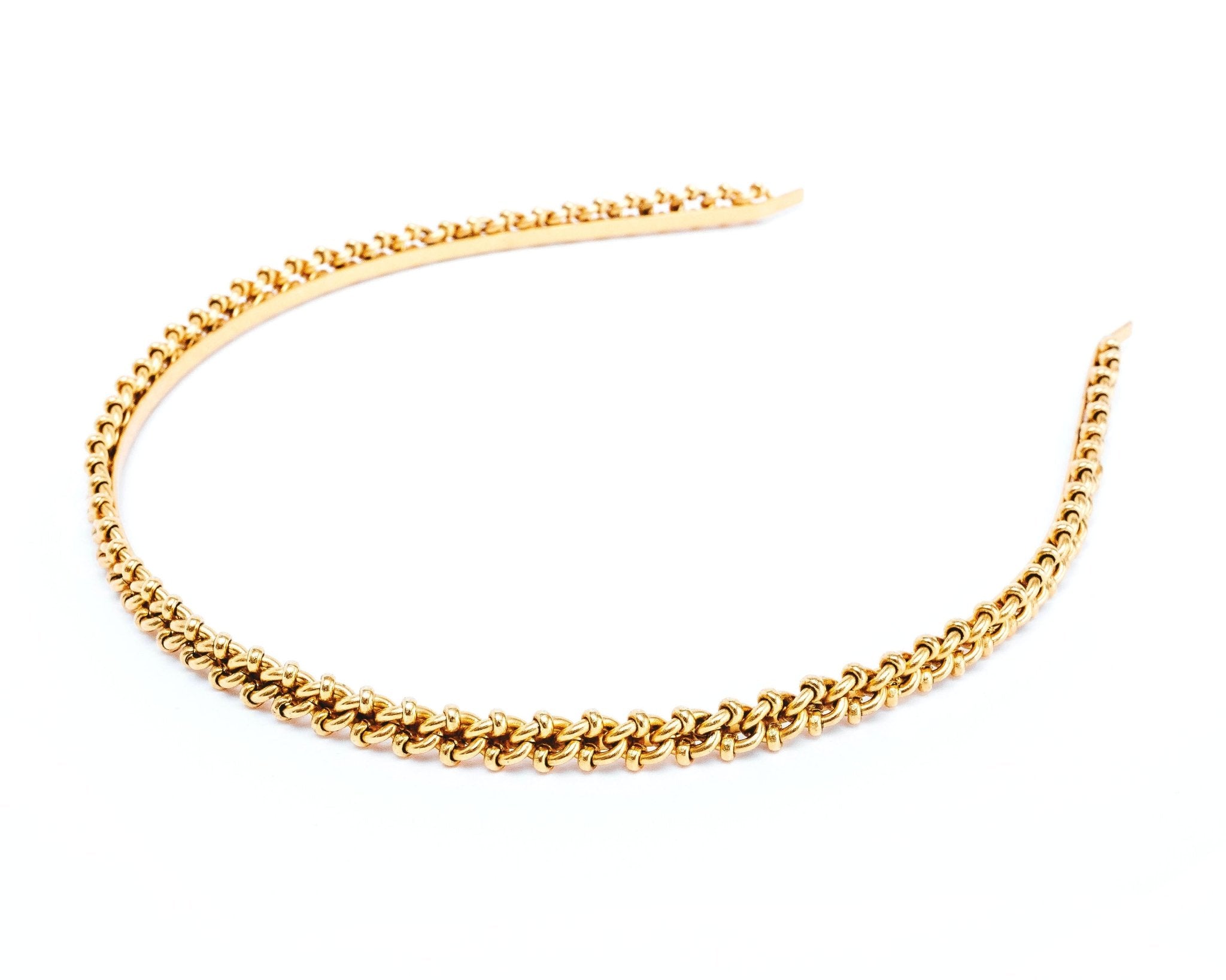 The Meika Headband features oversize golden links. 24kt Gold Plate, Proudly Made in the United States.