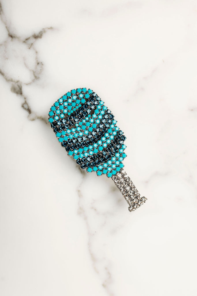 Get ready to make some new friends on the pickleball court! Show off your love for the game with this playful pickleball pin. Perfect for accessorizing your bag or sweater, this pin is sure to spark conversation and connect you with other pickleball enthusiasts. Serve up some fun with the Pickleball Racket Pin Pin! Premium Czech Crystals, Hematite Plate, Proudly Madde in the USA.