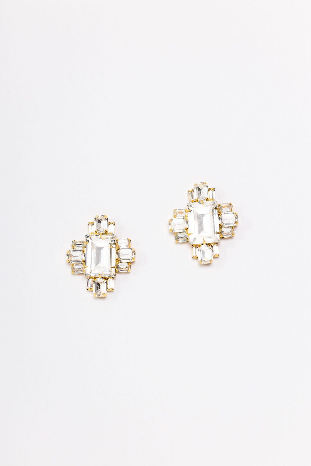 The Thalira Earring features a striking emerald-cut crystal as its focal point, elegantly flanked by three smaller emerald-cut stones in a balanced arrangement. The clean lines and sharp facets of this design create a contemporary yet timeless silhouette, offering versatile sophistication for any occasion. Ideal for those who seek jewelry that speaks through understated refinement and architectural beauty.24K Gold Plate. Swarovski Crystals. Post Closure. Proudly made in the U.S.A