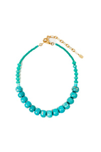 The Turia Necklace adds some fun to your jewelry collection with its graduated turquoise bead design. Perfect for layering with other necklaces, this quirky piece will add a pop of color to any outfit. Turia up your style game with this necklace (see what we did there?). Turquoise Howlite, Glass & Acrylic Beads, Proudly Made in the USA.