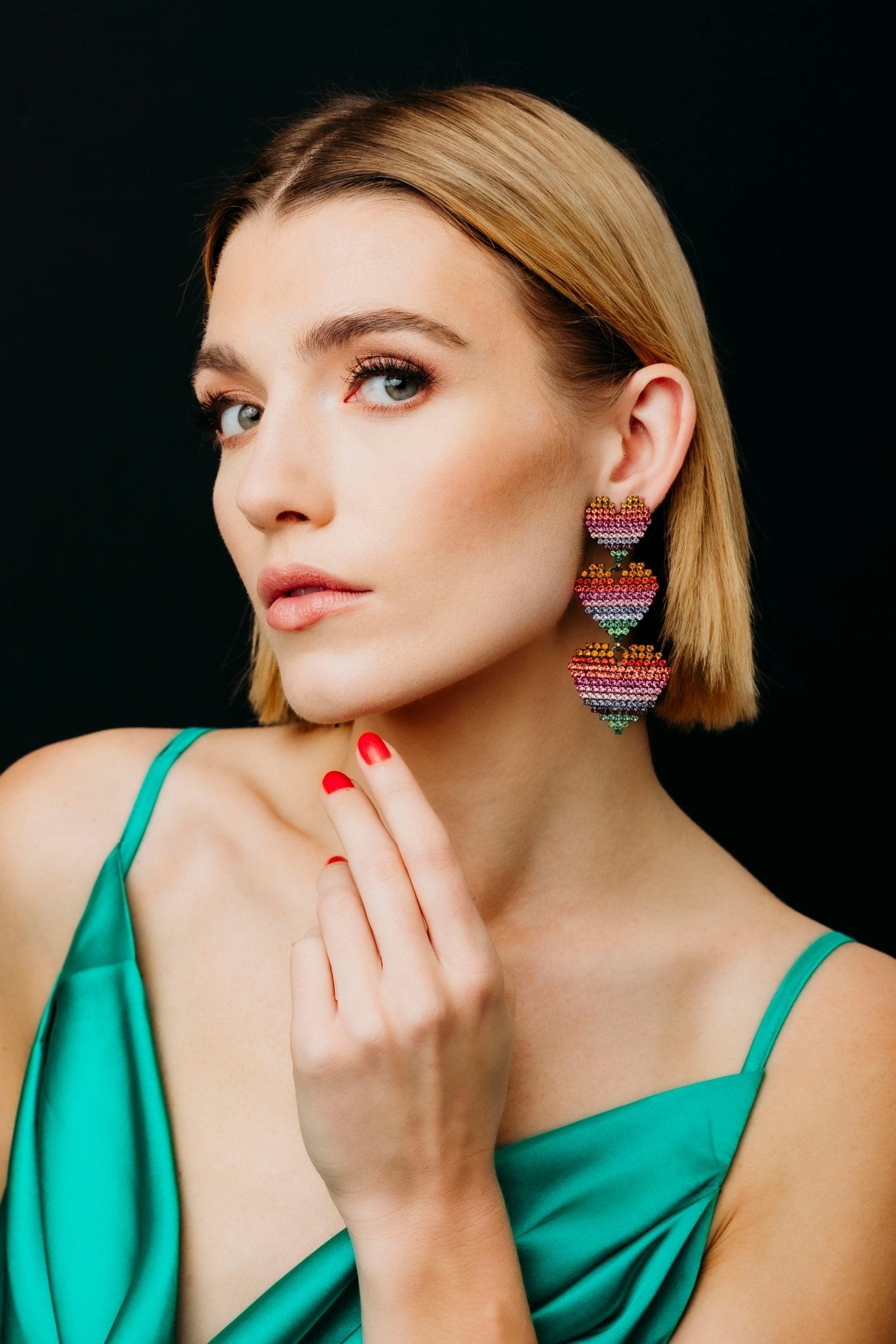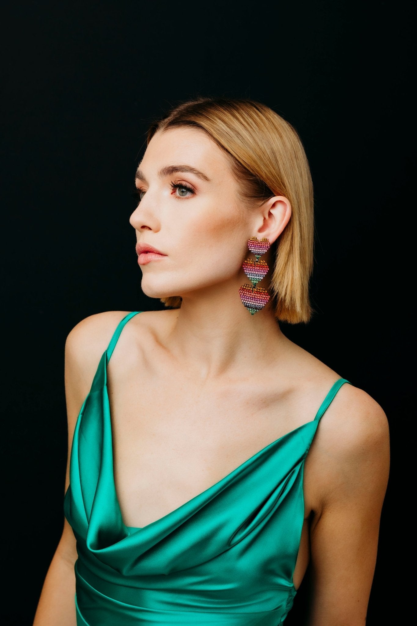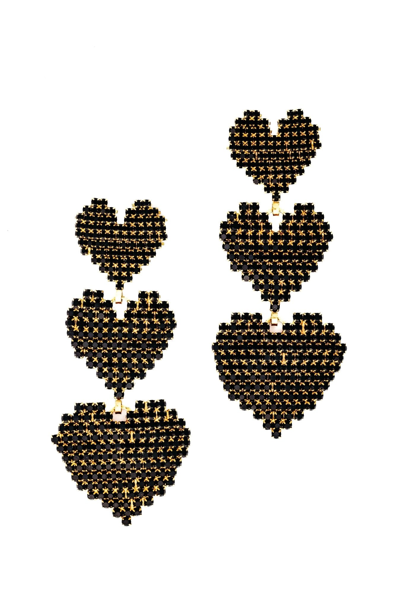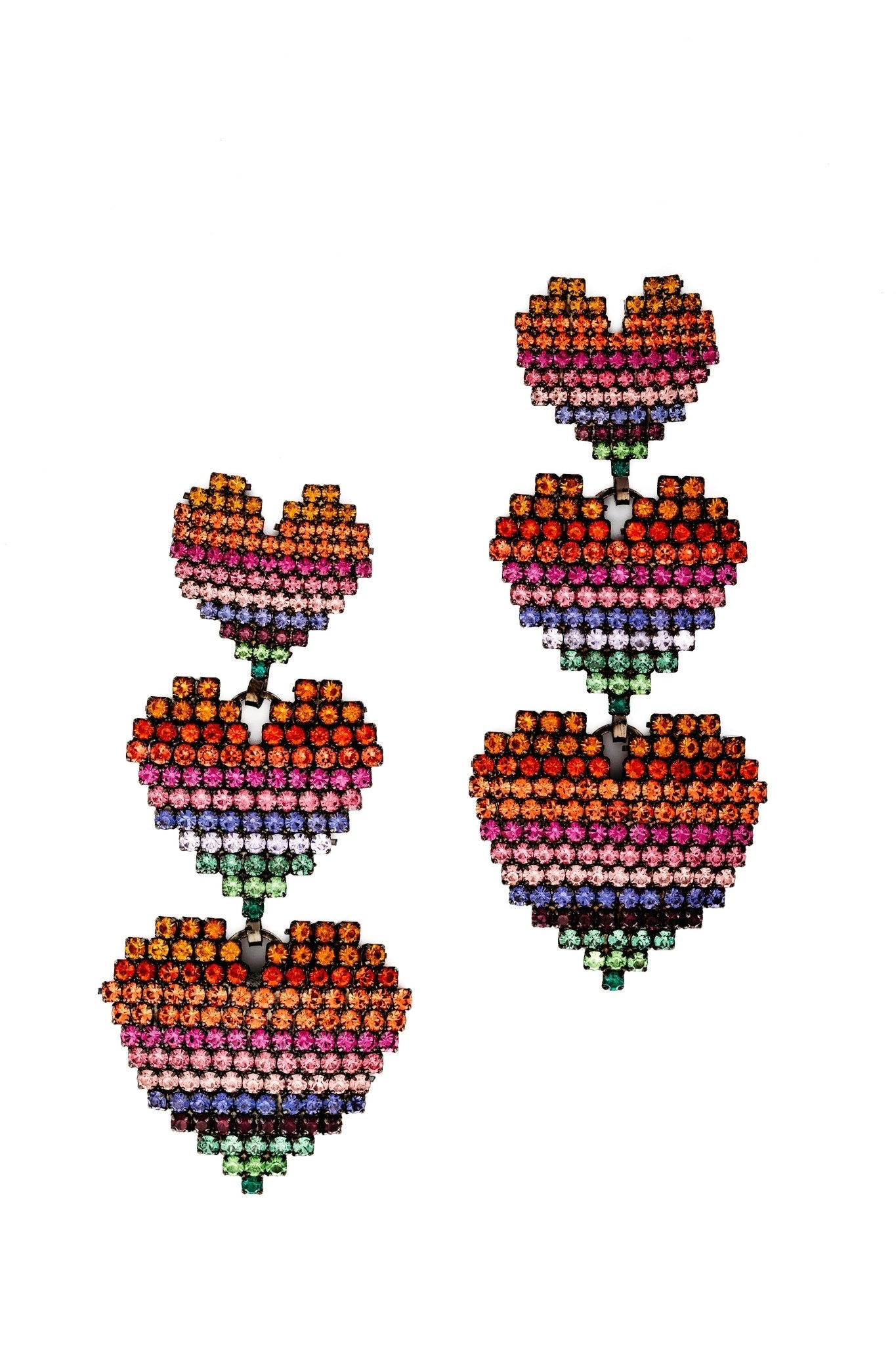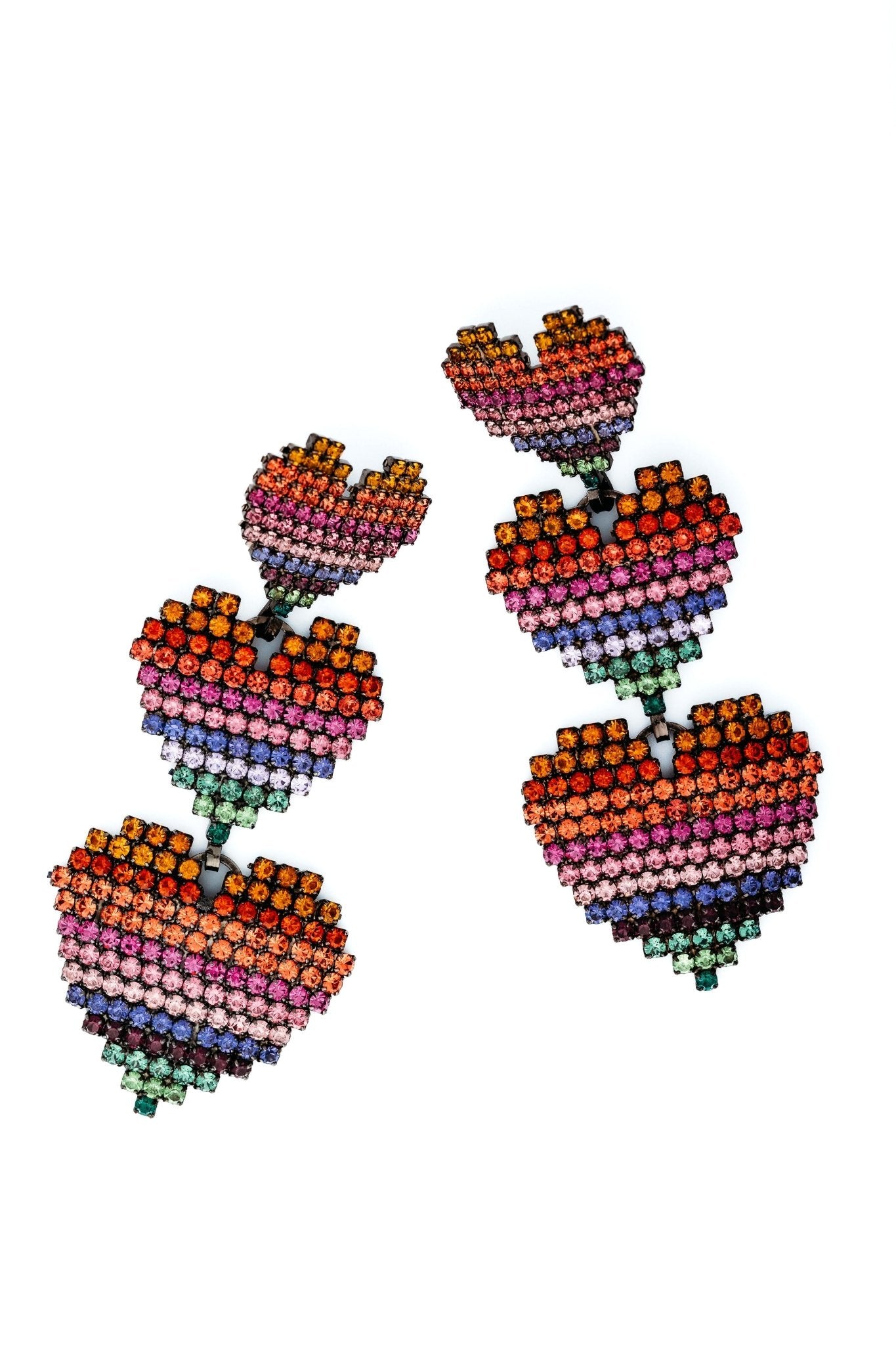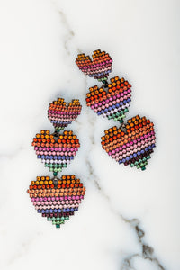 Show your love with Valentina Earrings! Adorn your lobes with a glorious expression of love in the form of three sets of graduated crystal hearts in classic jet or soft rainbow hues. A charming gift for any occasion. Premium Czech Crystals, Hematite or 24kt Gold Plate, Post Closure, Proudly Made in the USA.
